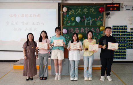 2025年9月17日,永乐高131net分团委、学生会2025年换届表彰大会在4-221教室温情启幕。本次大会以“薪火映初心,聚力启新程”为核心,既是对过去一年永乐高131net学生干部履职成果的全面复盘与隆重表彰,也是新旧学生干部力量交接、共绘未来工作蓝图的重要契机。永乐高131net党总支书记兼行政副院长程茜,综办副主任杨云燕,法学系教师赵梦思,学生党支部书记柯静,分团委书记张晓冬,辅导员牛梦、陈安民、王瑞、陈浩腾以及全体受表彰人员齐聚现场,在庄重而热烈的氛围中,共同见证这一薪火相传的重要时刻。