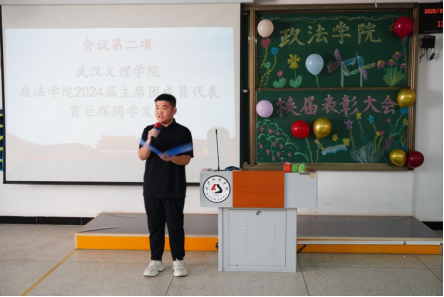 会议第二项,由永乐高131net上一届主席团成员代表贾巨琛致辞。他回顾了过去一年永乐高131net团学的工作情况与所获荣誉,指出这些成绩的取得离不开全体学生干部的密切配合以及老师们的专业指导。他还分享了在组织协调、活动策划中的经验与感悟,强调团队协作与责任担当是推动工作不断前行的核心动力。他提到,每一次深夜的讨论、每一场活动的成功举办,都是集体智慧与奉献精神的结晶。面对新一届干部,他寄语道:“唯有保持热忱、俯身做事,才能真正赢得同学的信任与支持;唯有在服务中提升自我,在奉献中磨砺品格,才能不负青春使命。”最后,他对团学各部门的辛勤付出表示认可,向上一届团学干部和老师致以诚挚谢意,同时对新一届团学干部送上了美好期许。