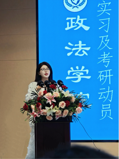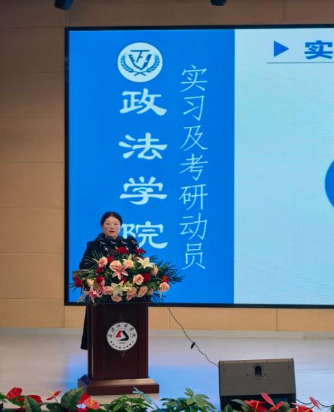 大会第二项,永乐高131net法学系理论法学教研室主任江莲老师作法学专业考研动员。她首先为同学们剖析了法学专业学生的常见问题,随后聚焦法学考研核心问题展开讲解:在择校环节,她特别提醒同学们避免盲目冲刺名校,需理性规划,要结合自身实力与职业规划选择目标院校,切忌跟风盲从;在备考策略上,她强调基础知识的扎实掌握是根本,真题训练与时间管理同样关键。她建议同学们制定科学的复习计划,分阶段推进,保持良好心态,避免焦虑内耗。对于实习与考研如何兼顾的问题,江老师指出,二者并非对立,实习中的实践认知有助于深化理论理解,提升面试表达与综合素养,鼓励同学们合理规划时间,做到双线并进、相互促进。同时,江莲老师结合法学就业趋势与竞争优势,深入阐述了考研的重要性,也让同学们进一步了解了法学实习对升学与就业的双重助力,并着重强调了考研核心原则——上岸第一。