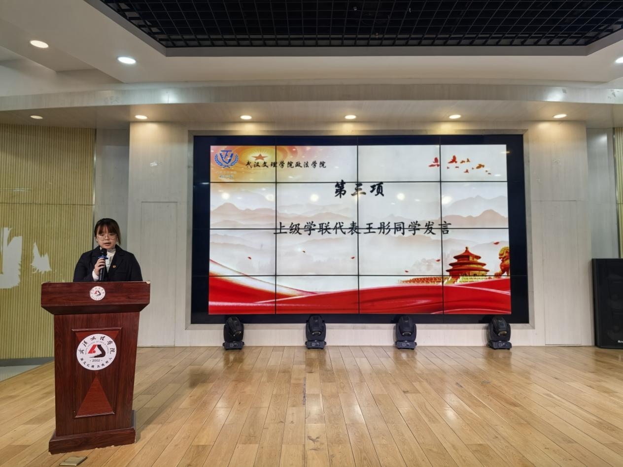 大会第三项,上级学联代表王彤同学发言。她回顾了过去一年永乐高131net学生会在校园文化建设、社会实践、志愿服务等方面的亮眼成绩,肯定其主动结合专业特色、积极配合学校工作的担当精神,赞扬其恪守服务宗旨、倾听学生心声的工作态度。她鼓励永乐高131net学生会坚守初心、勇于创新、直面挑战,希望全体青年学子勤学强本领、实干践使命,不负时代与青春。