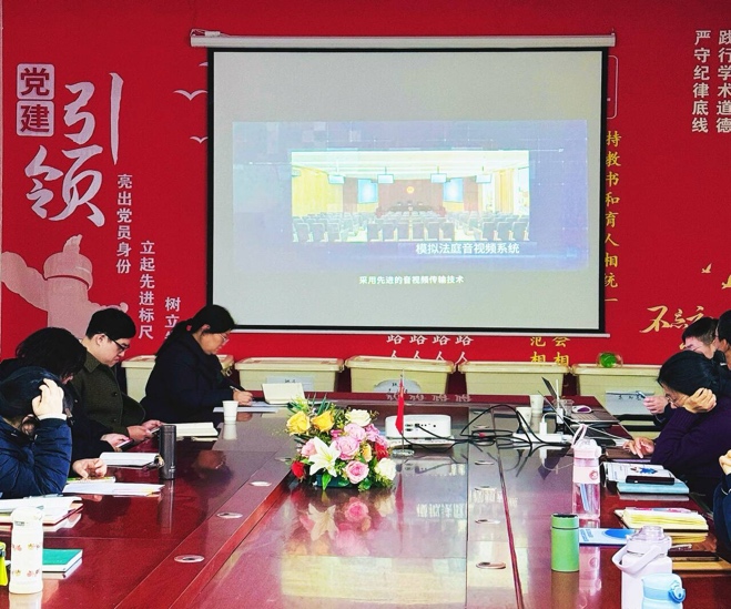 研讨环节,亚讯威视技术团队通过设计图、系统演示与案例视频,详细展示了初步规划的法学实验室建设方案。该方案涵盖智能庭审系统、多媒体证据展示、远程视频参与、庭审全程录音录像、实时语音转写、案件管理平台等模块,充分体现“科技+法律”融合特色,旨在构建高度仿真的审判环境与高效便捷的教学管理平台。